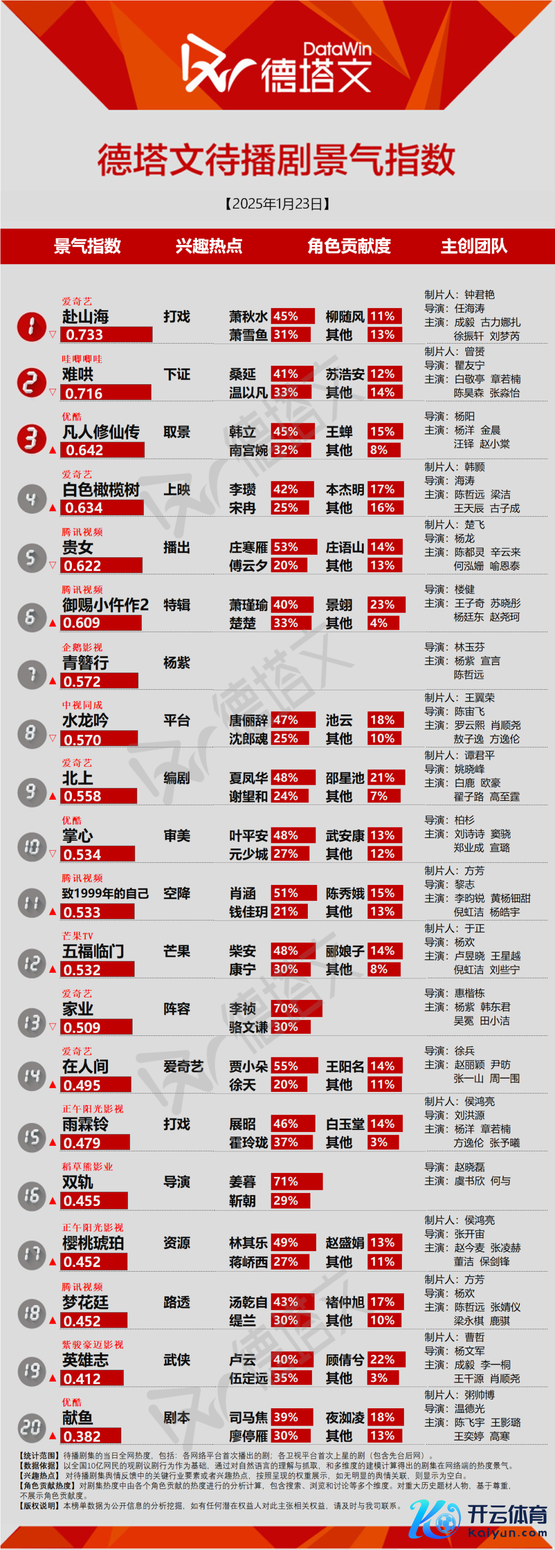 3、榜单袒露主出品公司和主播放平台,以及待播剧的汇聚舆情焦点。