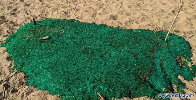 22、海滩上发现绿色半透明物资,看起来像玻璃,但具有凝胶或果冻般的稠度