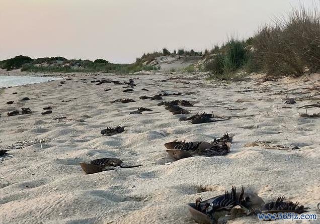 15、数百只故去的鲎躺在特拉华州的海滩上