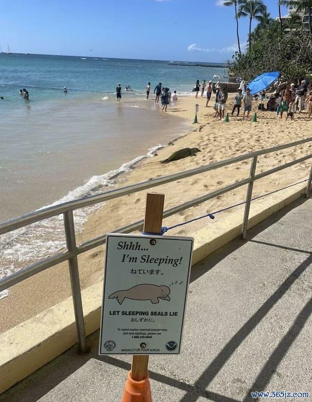 10、我地方的度假村立着一个标记,申饬搭客防备海滩上的海豹