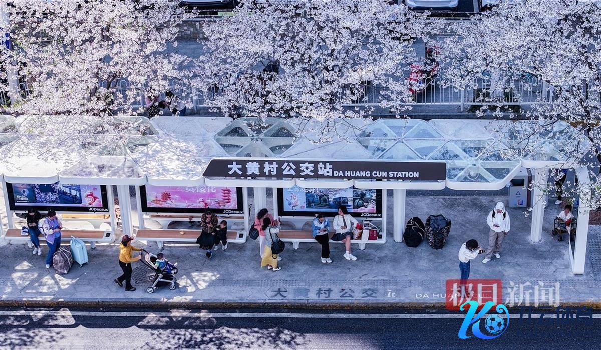 过程矫正,大黄村公交站已是面目一新的科技精明站台,新颖的站台与蜂涌着站台的粉白如霞的樱花情味横生。微风吹过,樱花花瓣粗犷飞舞,如动漫中的唯好意思场景,好意思不堪收。