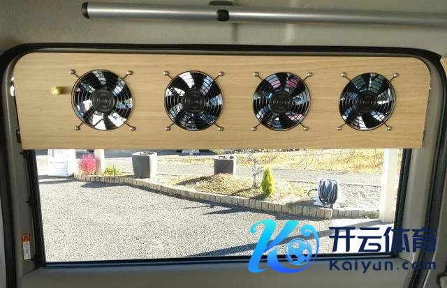 而车门顶部还设有一组透风换气扇,可以在夜晚保证车内空气畅通,若是在车内作念饭的话,也可以匡助净化车内滋味。