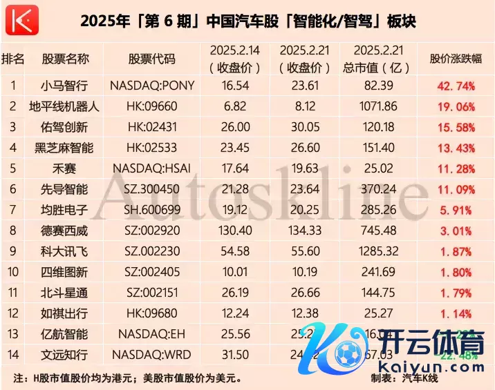 其中,小马智行大涨42.74%领涨总榜,地平线机器东说念主和佑驾改进分散高涨19.06%和15.58%排在第2、3位。