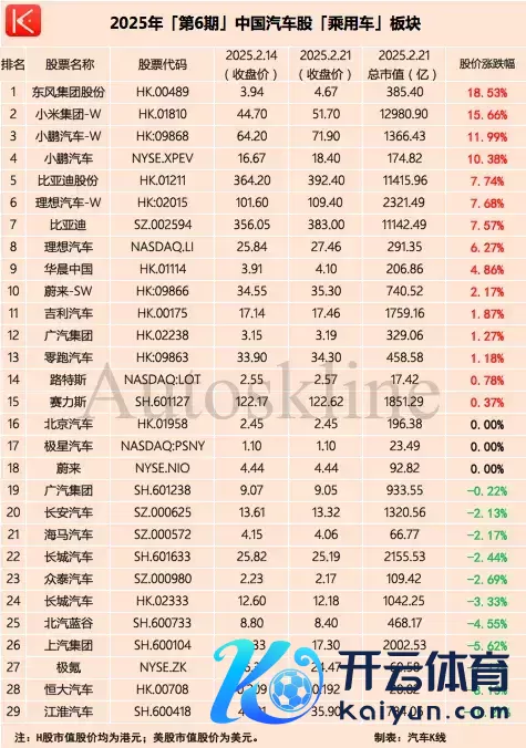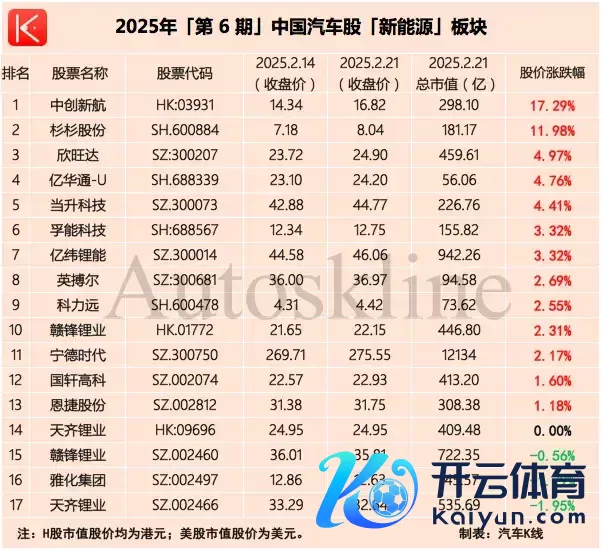 2025年第6期的涨跌榜再度迎来高涨,从《汽车K线》统计在册的86家汽车业上市公司股价长远来看,约五成汽车股飘红,股价平均收涨1.99%,总市值增厚约4300亿元至9.23万亿元。