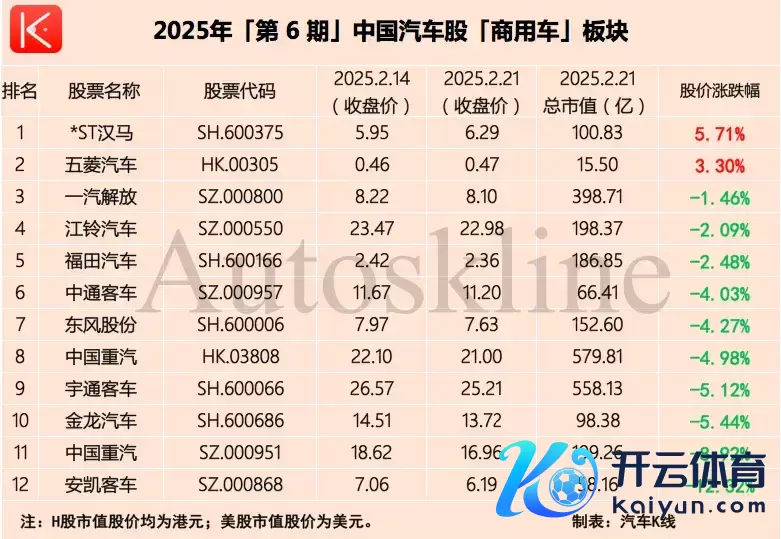 商用车板块相同以跌为主,平均跌幅为3.51%。