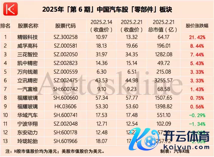 其中精锻科技以21.42%的周涨幅再度领涨,而参预涨幅TOP3的威孚高科和三花智控的涨幅未逾越10%。