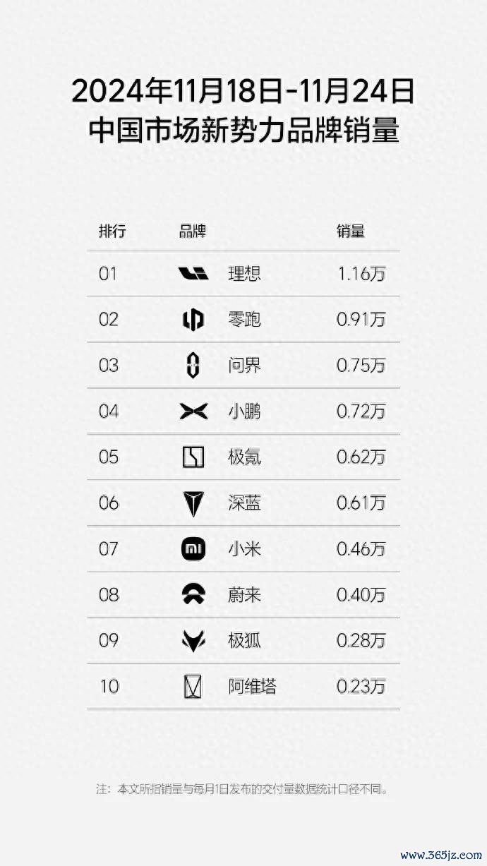 理思汽车如约公布了2024年11月18日至24日的周榜,咱们起来看一下现金九游体育app平台,此次的周榜有很大的变化。
