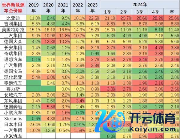 比拟之下,比亚迪的施展则相等亮眼。2021 年,比亚迪的商场份额为 9.5%,而到了 2024 年第四季度,这一数字如故飙升至 28.2%,增长了两倍之多!
