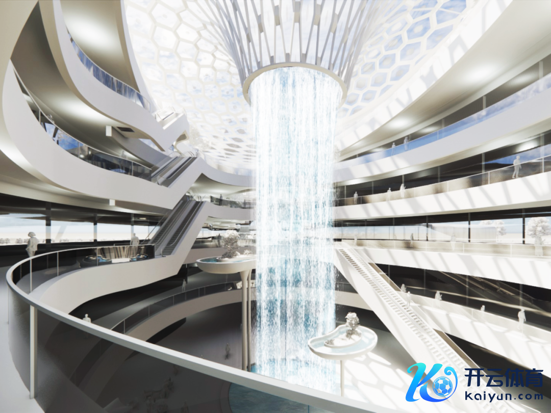 从效能图上看,市场里面如花朵般“盛开”的穹顶绚烂耀眼,30米高的瀑布从中庭流泻而下,水幕与当然光美不可言,为市场增添了满满的艺术感。
