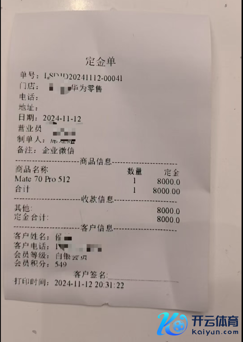 有西安的破钞者则对《科创板日报》记者暗示,上周11月12日就有销售关系他,并暗示Mate70系列的前锋计较依然开启了。这名破钞者预支了8000元定金预订了Mate70 Pro 512GB版块。“精良售价他们莫得自大,但销售心里详情稀有,精良售价应该收支未几。”