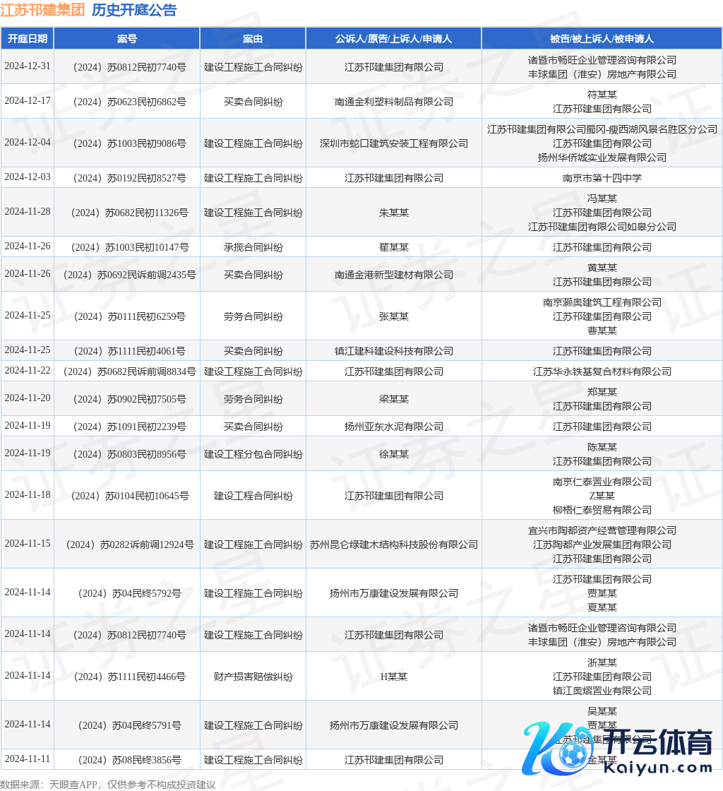 本站音信九游体育app娱乐,笔据天眼查APP裸露,近日公布了一则江苏邗建集团有限公司算作被告/被上诉东说念主的开庭公告,详备本色如下: