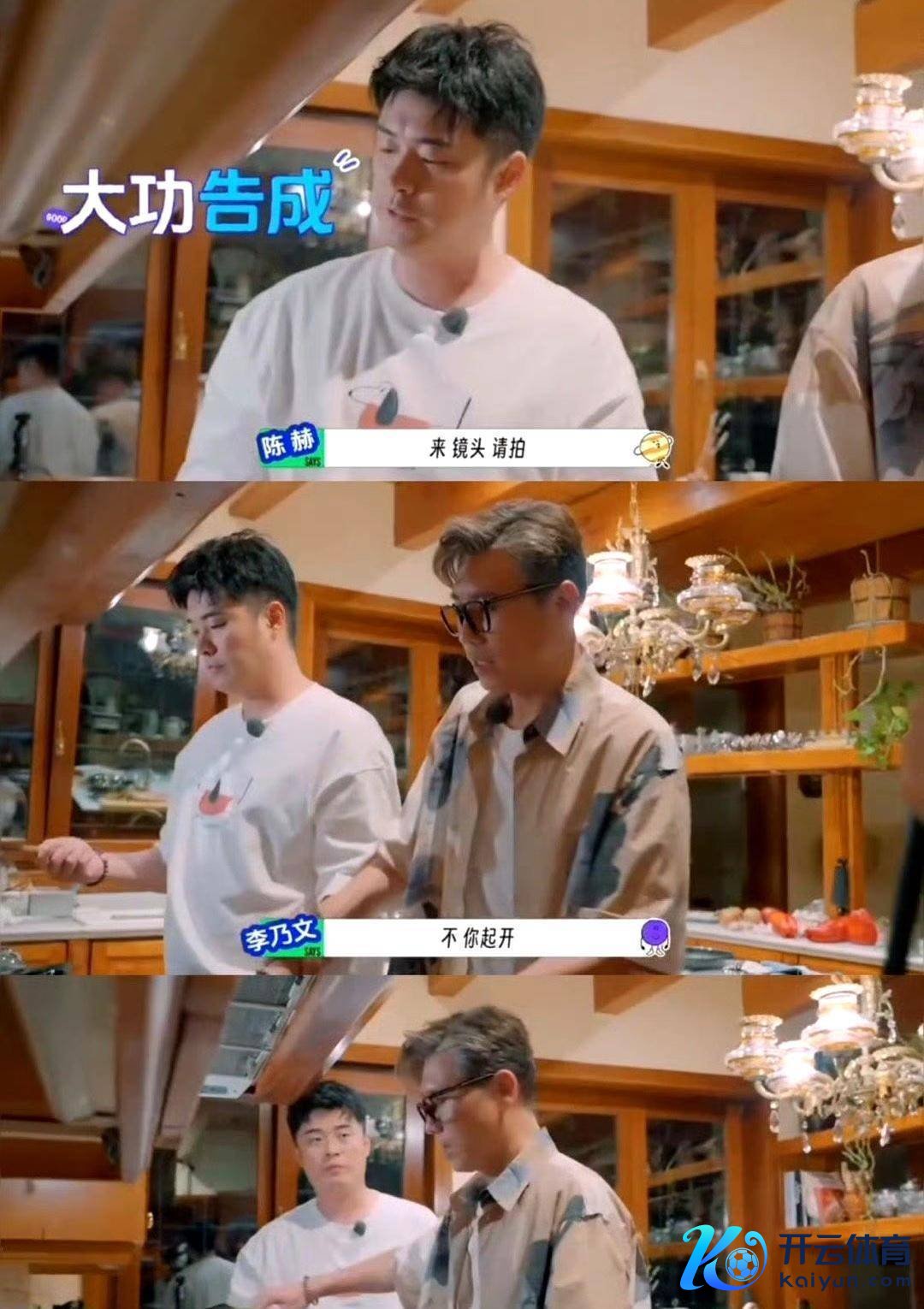 全程陈赫忙前忙后:肉是他切的,火是他守的,菜齐快炒好了,李乃文倏得伸手把锅铲一夺,对着镜头标记性颠了两下,班师通告“出锅!”