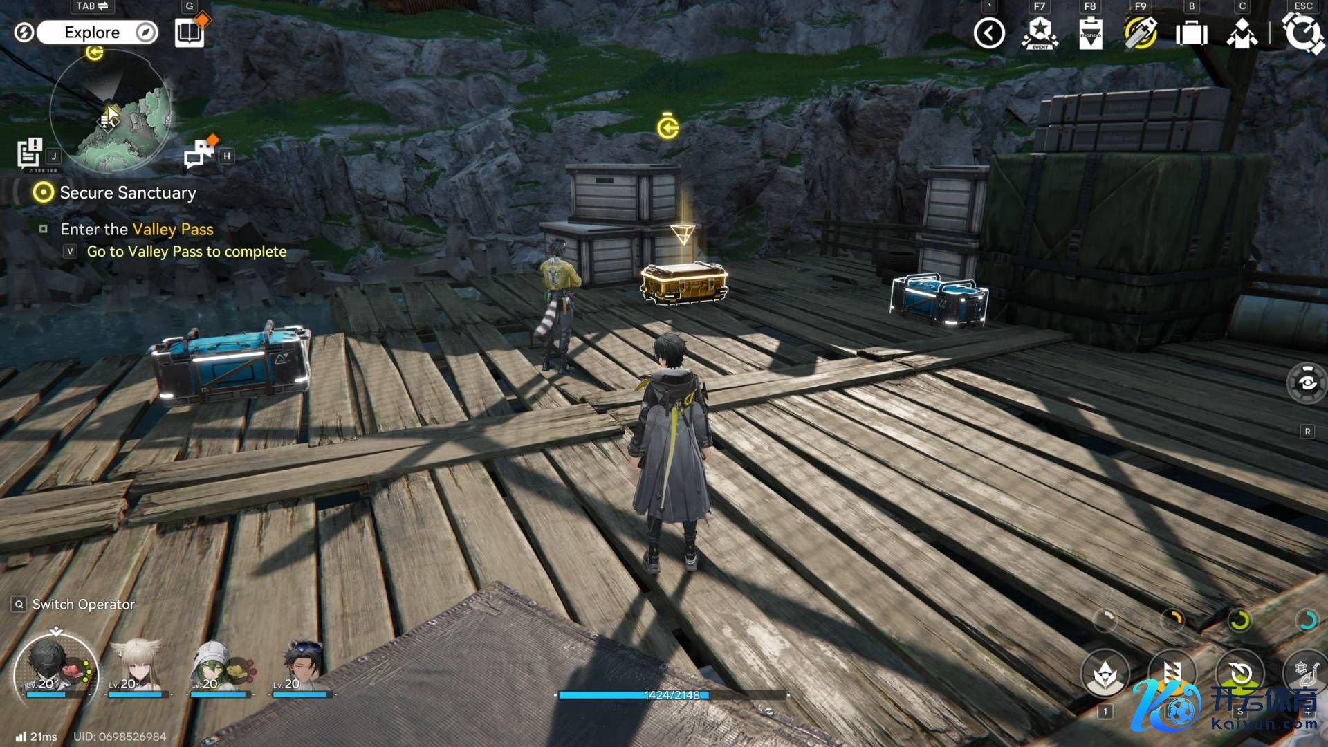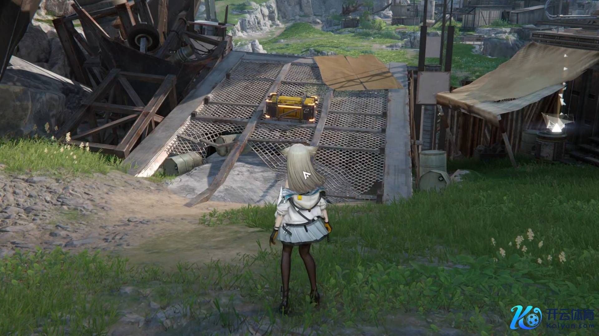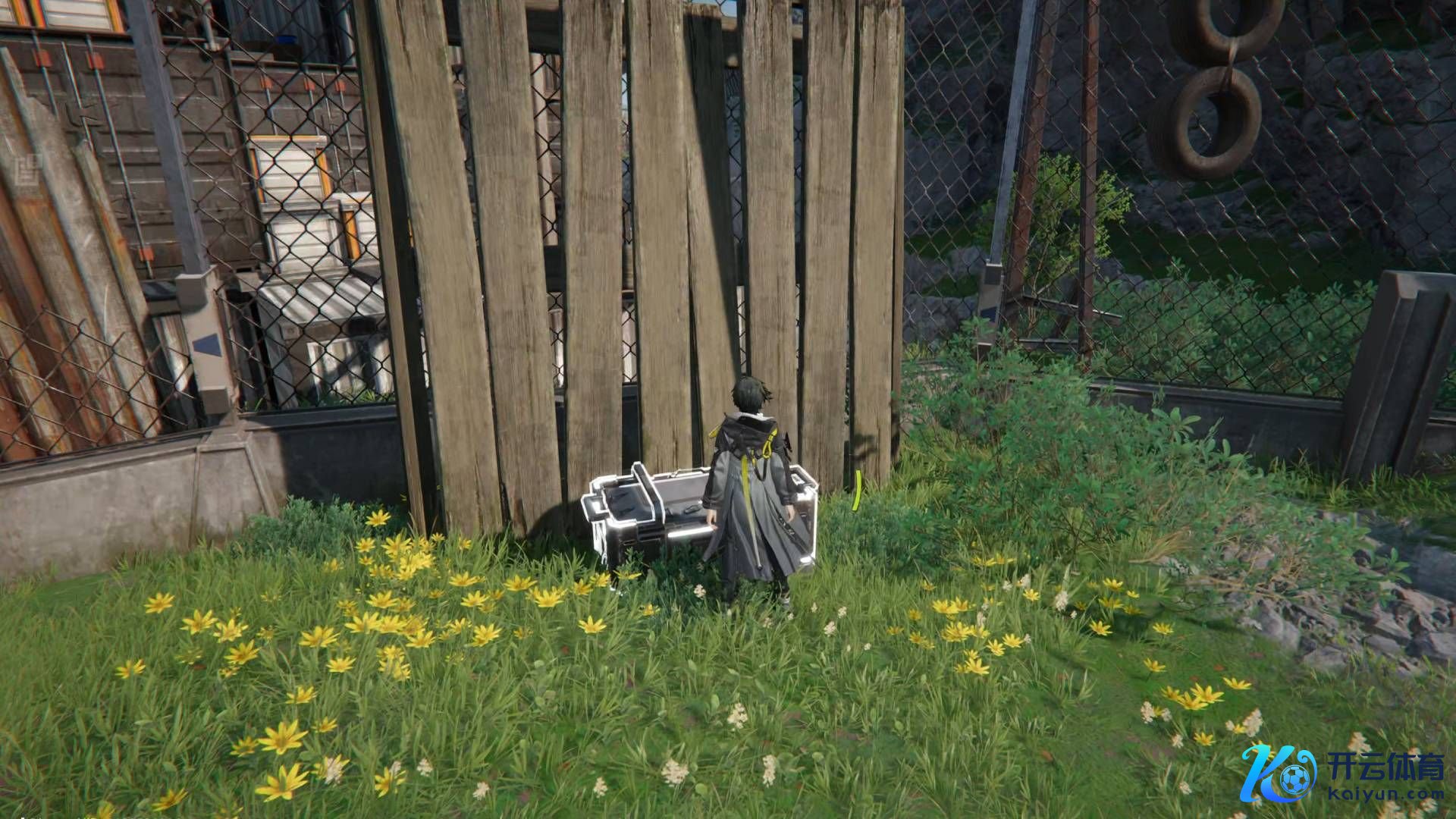 3**过程第二个宝箱后,爬上板条箱**并跳入围栏区域。这里有一个帮衬宝箱。
