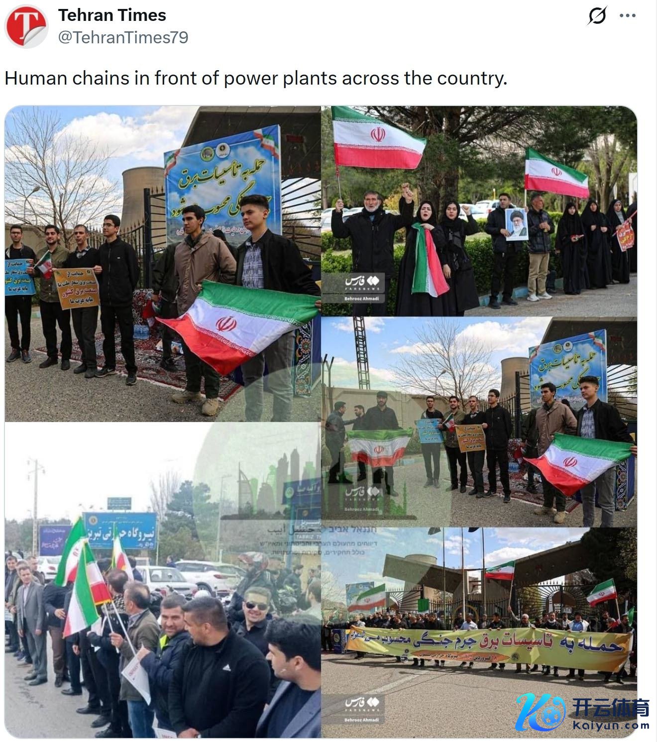 当地手艺7日现金九游体育app平台,伊朗《德黑兰时报》在X平台发布音问称,当前伊朗国内多地发电厂前,都出现了“东谈主链”,也即群众联袂并肩,算作对好意思国威逼打击伊朗发电厂的恢复。