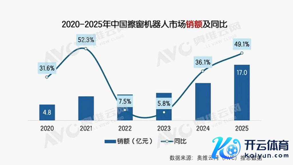 在中国大本营,科沃斯的总揽力相似不能撼动。字据奥维云网 ( AVC ) 的监测数据,按照 2021 年至 2025 年 11 月的全渠谈销量及销额计较,科沃斯已邻接五年蝉联中国擦窗机器东谈主市集界限第一。十分是在 2025 年 1-11 月,科沃斯以 64.3% 的销售额占比稳居行业首位。