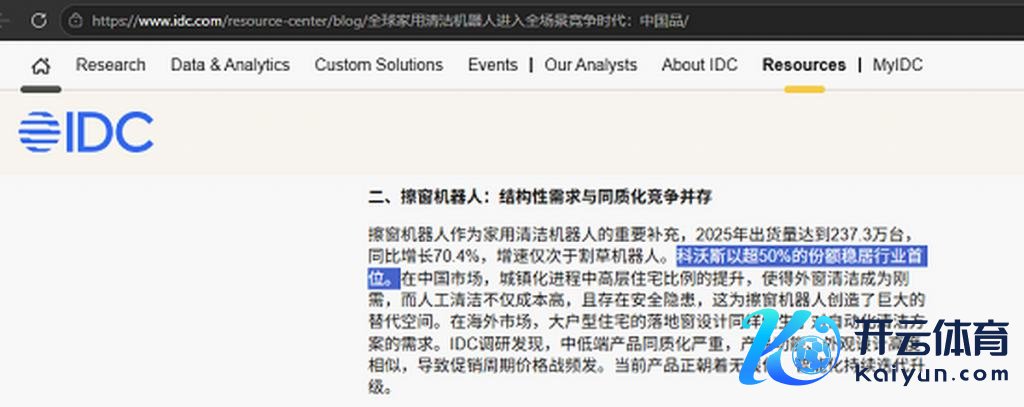 国外巨擘数据机构 IDC 发布的《寰球家庭清洁机器东谈主市集追踪表现,2025Q3》自大,2025 年前三季度,科沃斯稳居寰球出货量第一位置,并保捏了高达 108.2% 的同比增长率,远超行业平均水平,捏续引颈寰球市集增长。事实上,科沃斯已邻接多年保捏寰球擦窗机器东谈主市集份额第一,IDC 在其《寰球家用清洁机器东谈主参预全场景竞争时间:中国品牌主导,细分赛谈爆发》中明确指出,科沃斯以超 50% 的份额稳居行业首位。
