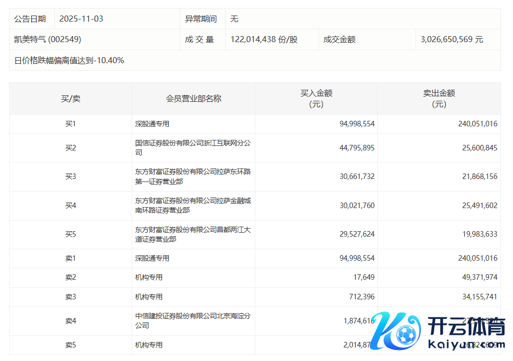 凯好意思特气本日跌9.96%,有3家机构专用席位净卖出1.08亿元凯好意思特气本日跌9.96%,有3家机构专用席位净卖出1.08亿元