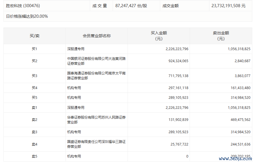 胜宏科技当天20cm涨停,陈小群席位净买入9.21亿元